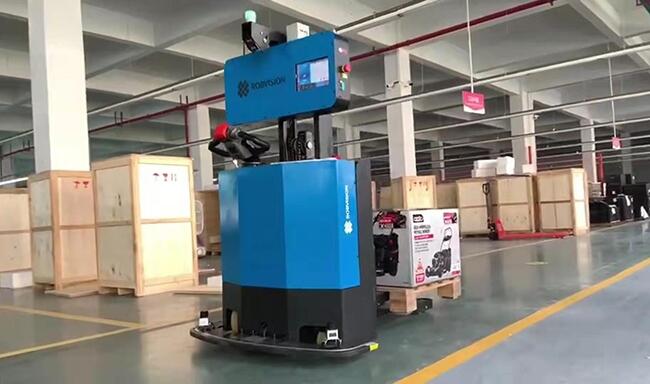 仓库无人叉车AGV以轮式移动为特征,较之步行、爬行或其它非轮式的移动机器人具有快捷、效率高、结构简单、可控性强、安全性好等优势。与物料输送中常用的堆垛机、单轨小车、传送带、传送链、传送辊道可以很好的配合。AGV的活动区域无需铺设轨道、支座架等固定装置,不受场地、道路和空间的限制。因此,在自动化物流系统中,最能充分地体现其自动性和柔性,实现高效、经济、灵活的无人化生产。