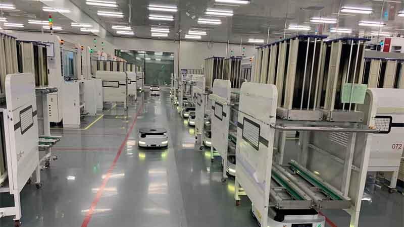 项目简述:厂区内共部署60余台5G智能搬运机器人,承担电池片自动上下机柜、暂存和搬运的全部工作,为企业提效增产,现日均产能达100万片。