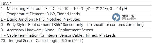 ABB PH电极TB557.1.1.E.0.0.T.20规格及型号描述