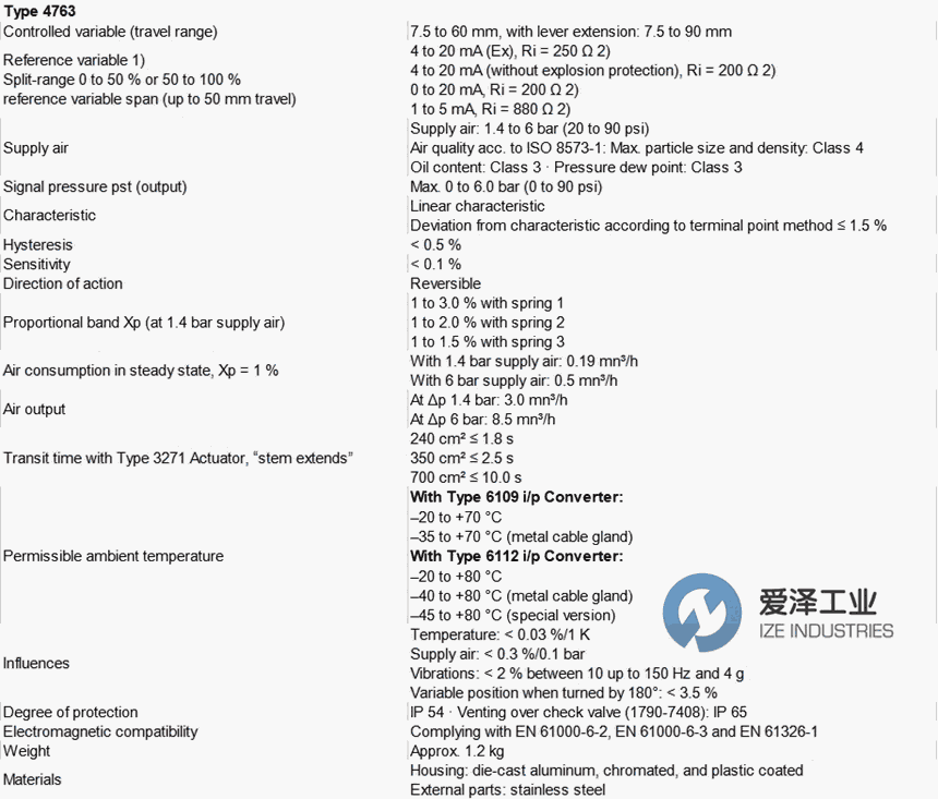 SAMSON定位器4763系列4763-00110032110.03产品参数