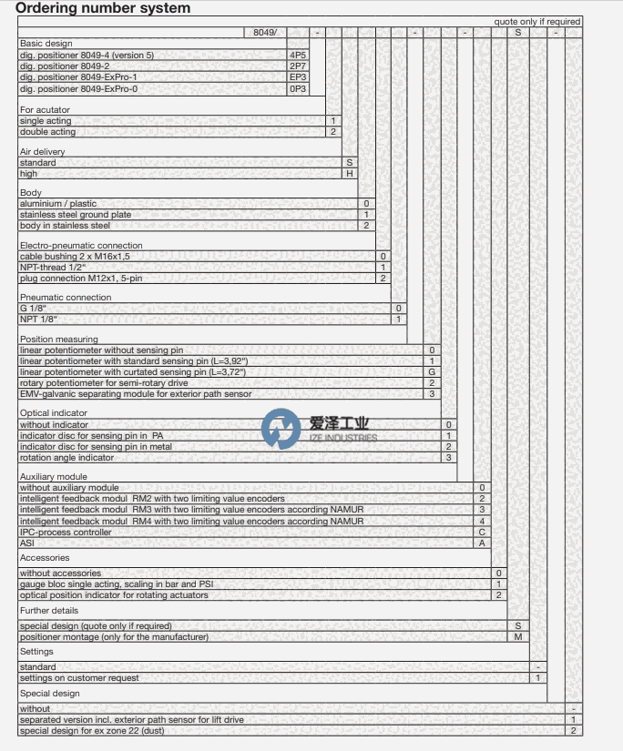 SCHUBERT&SALZER定位器8049系列其他常用型号: