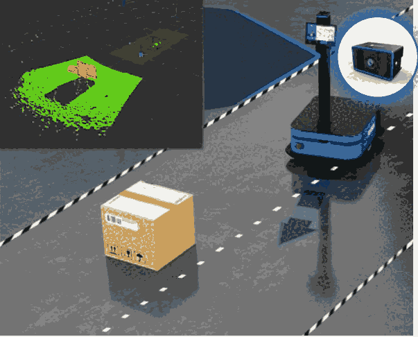 装有Eagle系列3D视觉传感器的移动机器人可避开地面以上3cm的障碍物或低于地平面3cm的凹坑,面对窗边阳光直射场景,金属拉丝反光,低至5%反射率等情况依然有出色的避障性能。