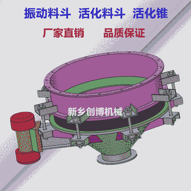 振动料斗是一种新型给料设备、安装在各种料仓下部,通过振动使物料活化,能够有效消除物料的起拱、堵塞和粘仓现象,解决料仓排料难的问题。