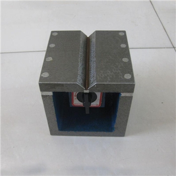 磁性方箱的用途:在工业生产中用于检测零部件平行度、垂直度的器械,磁性方箱还可以根据检测结果在重要位置做出划线,是测量中重要检测工具。并具有:精度高、不易变型、耐磨性强等优点。能在重负荷及一般温度下保持稳定。同铸铁方箱十分接近,差别在于,磁性方箱的V槽部分及底部均带有磁力,使得被测工件可以牢固的固定在方箱上,使用方便;同时也大大降低了由于工件不稳,或操作过程中的疏忽,使工件滑落,伤及工作人员的情况。