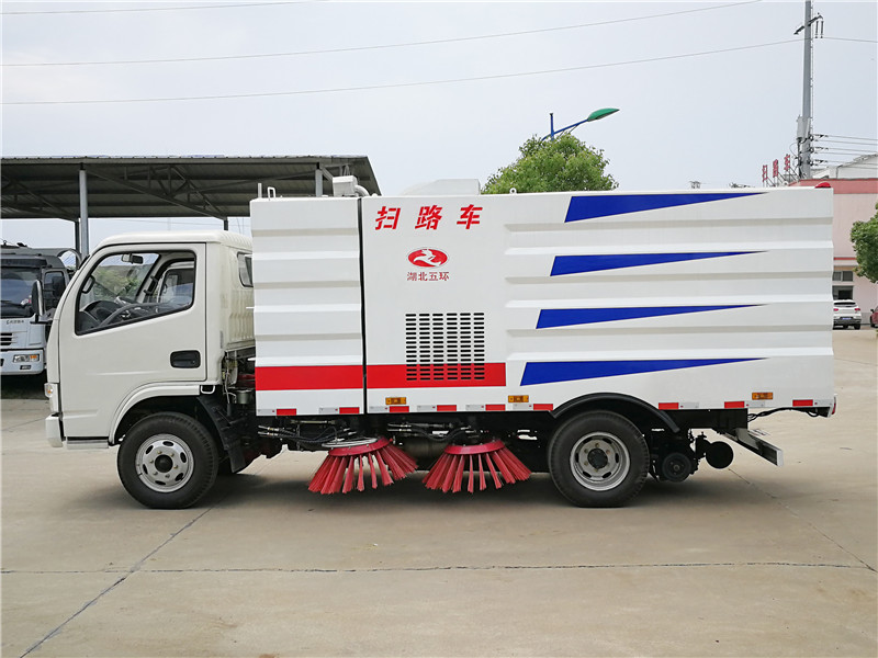 该扫路车采用东风福瑞卡国三二类底盘改装,加装副发动机、风机、清水箱、垃圾箱、左右立扫、扫盘降尘系统,液压系统、专用装置电控系统和副车架等改装而成。