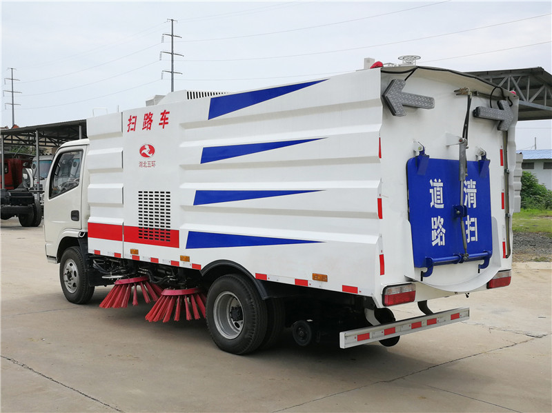 ● 清扫装置型式:中置四盘扫+后置吸嘴,扫盘可自动避障;扫盘具有3种作业模式:全扫、左前不扫、右前不扫,实现路面的清扫及吸 尘。● 吸嘴:滚动胶轮三点浮动支撑、能适应不同道路表面的清扫要求,属国内首创。● 所有紧固件均采用镀锌处理,扫盘、吸嘴等结构件均防腐防锈处理,附着力强,涂层耐腐、耐候性强;● 垃圾箱采用双层结构,坚固、耐用。内胆采用不锈钢材料制作,结构强度高,不锈蚀;● 在应急状态下,可通过设置的手动泵操纵垃圾箱升降等动作,特殊情况时能直接进入副发动机工作舱内进行检测及维修;● 垃圾箱外形采用侧部方形造型,圆弧过渡,全车比例协调、美观大方。垃圾箱侧板及顶板采用强度较高的设计,工艺简单,箱体内表 面光滑,垃圾倾倒方便无残留,且箱体外表面无焊接变形,无需补原子灰,整车造型美观。● 副发动机与风机采用离心离合器连接装置,能保证副发动机空载启动和副发动机停机时与风机自动脱离。● 采用智能化控制系统,电、液集中控制,操作简单,驾驶员可在驾驶室内完成各种动作的操作。车辆可根据用户需求加装雪铲,雾炮。