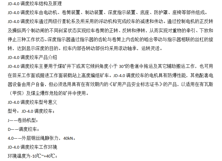 产品类型 | JD-4.0调度绞车 | ||