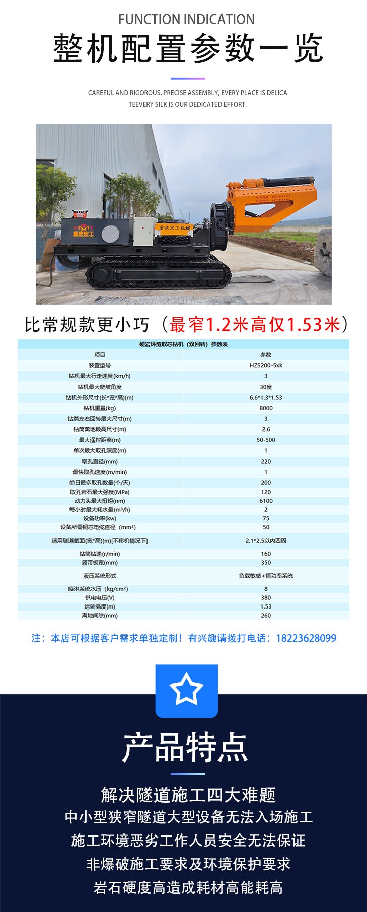 钻机外形尺寸(长*宽*高)(m) | 6.6*1.3*1.53 | ||