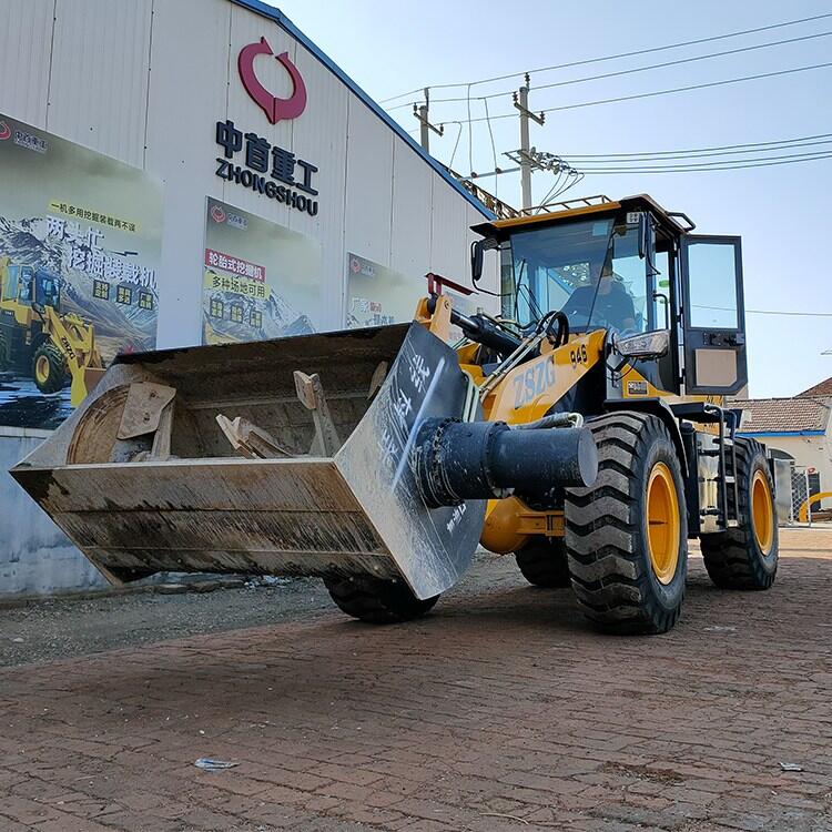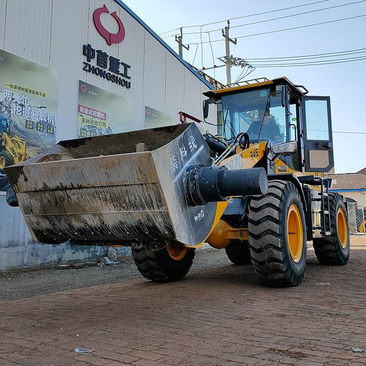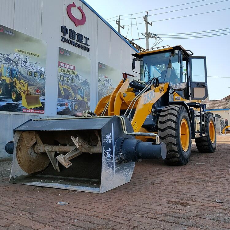 4、搅拌斗装载机大轴距,合理桥荷分配,牵引力、掘起力达,整机形式、作业稳定性好;