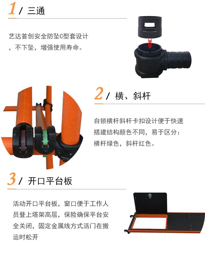 1.易达绝缘脚手架带电作业产品整体结构采用积木式组合设计,搭建拆卸简单快捷;