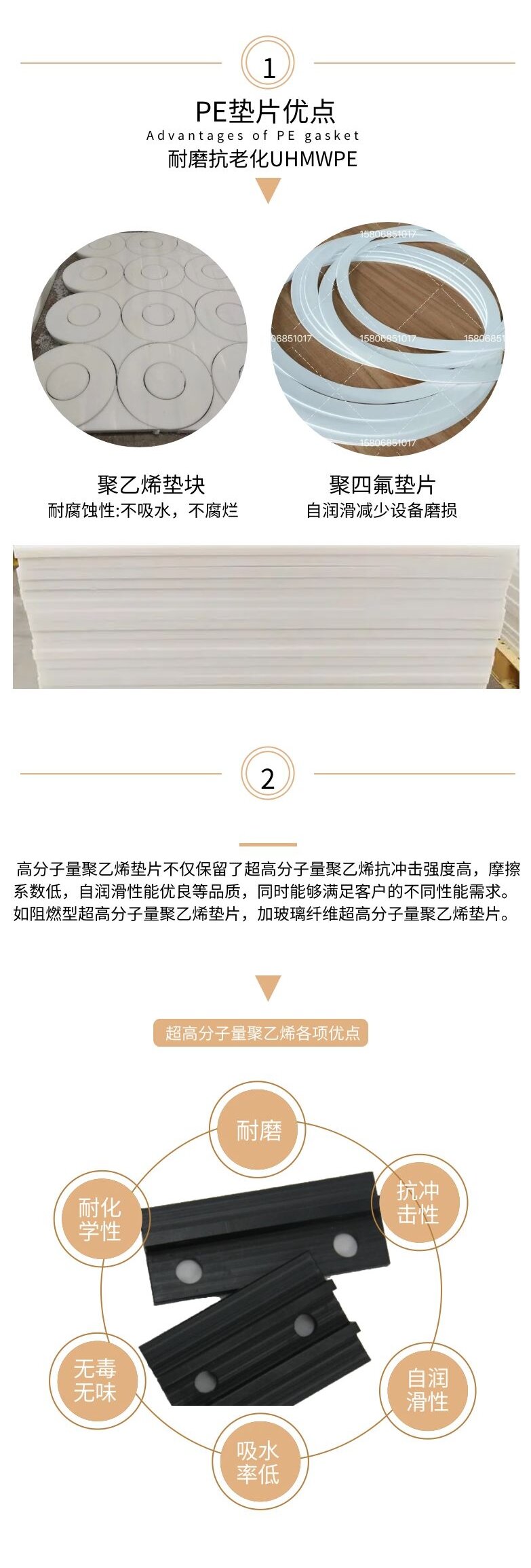 津鸿耐磨内径外径均可定制聚四氟乙烯密封垫片UHMWPE垫块按需加工