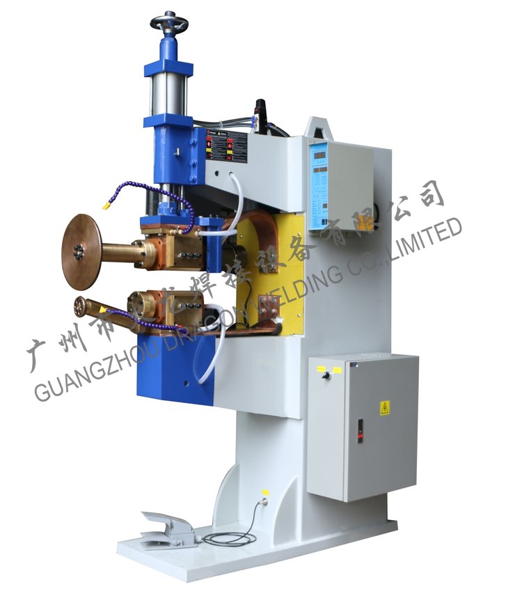 2.一台机器也可以同时具备横缝焊接和纵缝焊接两种功能,只要将转换一下上电极轮的方向和更换一下下电极臂,就可以轻松地完成两种焊接方式的切换;