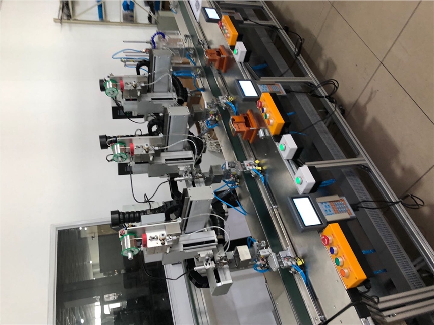 6.根据不同的产品大小,产品的传送皮带宽度可在产线换型的时候自动调节,仿形定位治具工装载板手动换型