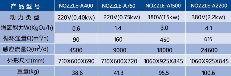 NOZZLE强力造流曝气机有漂浮式、沉水式和深水式三种安装方式。无需专用的安装基础,根据需求灵活选用。