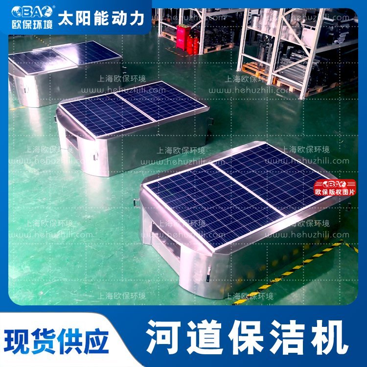 OBAO-FC400太阳能河道保洁机采用太阳能电源,特殊情况下还可采用电瓶供电作为补充。