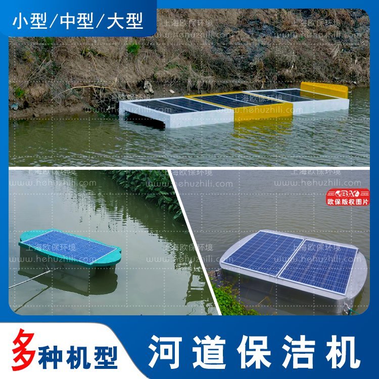 OBAO-FC400太阳能河道保洁机可在水中长期运行,运转稳定无噪音,操作维护简单,既可以清理水草树叶等常见垃圾,也可以吸收油污、柳絮等细小漂浮物,在清洁的精细度上也有较大优势。