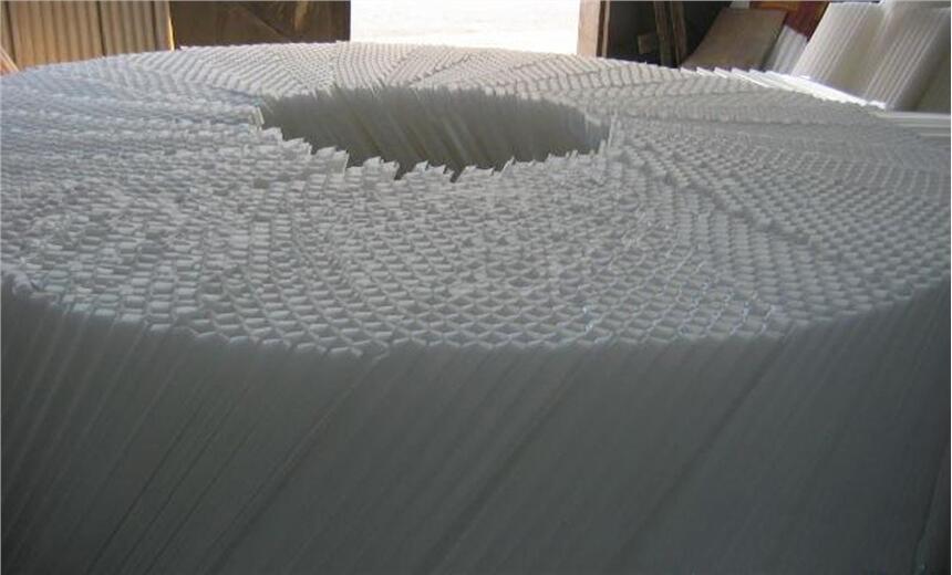 斜管填料六角形蜂窝填料(斜管填料)材质有聚丙烯(PP)聚氯乙烯(PVC)乙丙共聚三种。组装形式的斜管和直管两种形式。