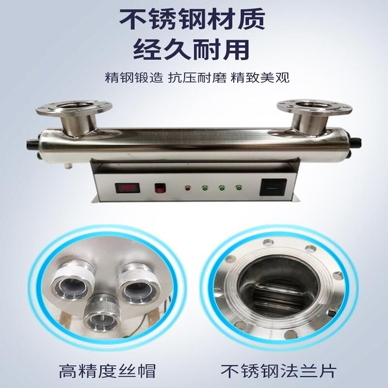 2.加工工艺:经全自动焊接而成,所有垭口经冲拔拉伸后焊接平滑无死角,内外抛光高亮度腔体将增强紫外线辐射强度,增强杀菌效果。加厚腔体设计,承压可达0.8Mpa,出厂严格的气压水压测试,完全杜绝漏水现象。