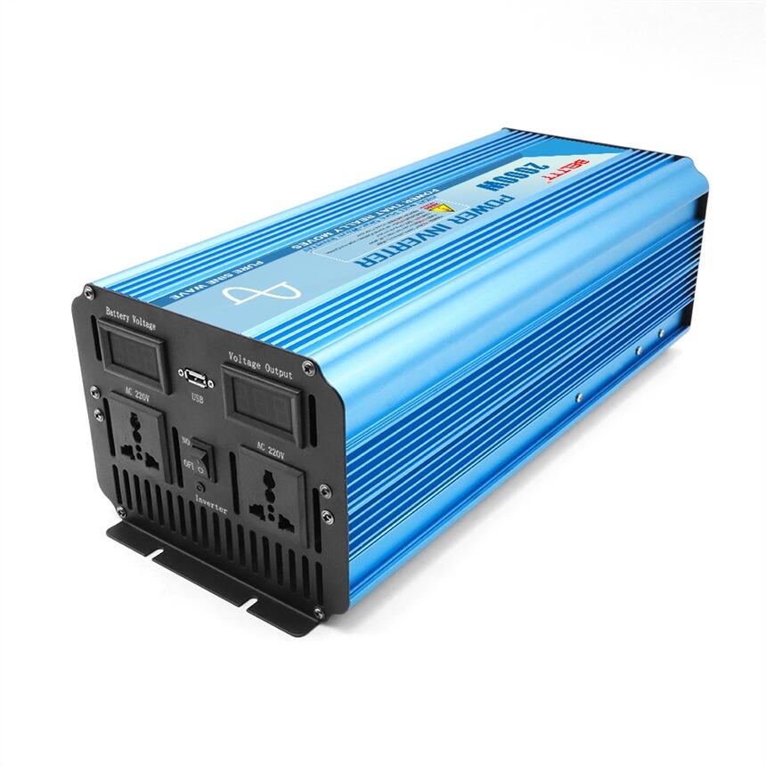 【技术参数】 输入电压:DC10-15.5V ,DC20V-30V 输出电压:AC220±5% 输出频率:50HZ±1HZ 低压警报(空载):DC 10.5±0.3V ,DC21V±0.3V 低压关闭电压(空载): 高压关闭电压(空载):>15.5V ,DC30V 无负载损耗:<12W 转换效率:>86% 持续输出功率:2000W 瞬间功率:4000W 输出波形:纯正弦波 尺寸:450*150*90mm 重量:3.85KG