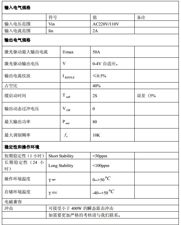 2:本产品为恒流输出电源,专用于半导体激光驱动应用场合。