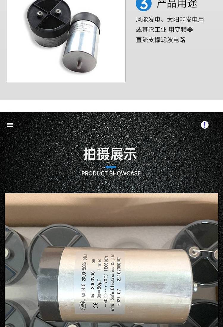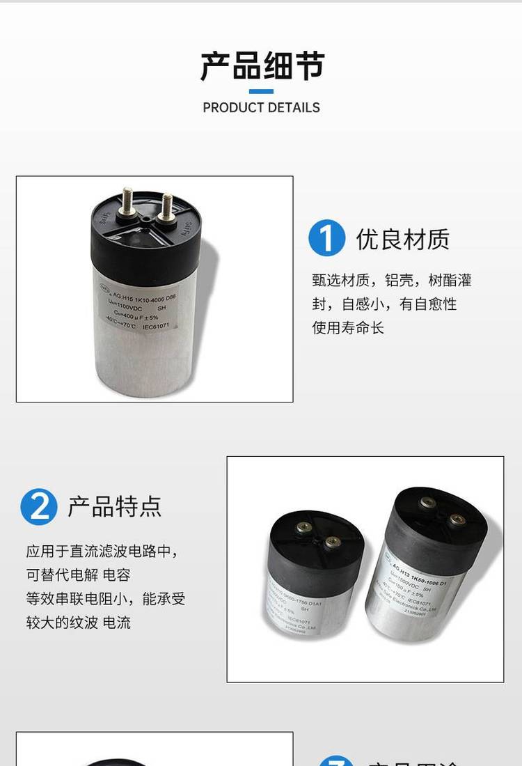 赛福CDC 80UF 2000VDC磁场刺激仪消磁器储能薄膜电容采用聚丙烯薄膜介质直流支撑电容器,其具有耐电压高、耐电流大、低阻抗、低电感、容量损耗小、漏电流小、温度性能好、充放电速度快、使用寿命长(约10万小时)、安全防爆稳定性好、无极性安装方便等优点。??