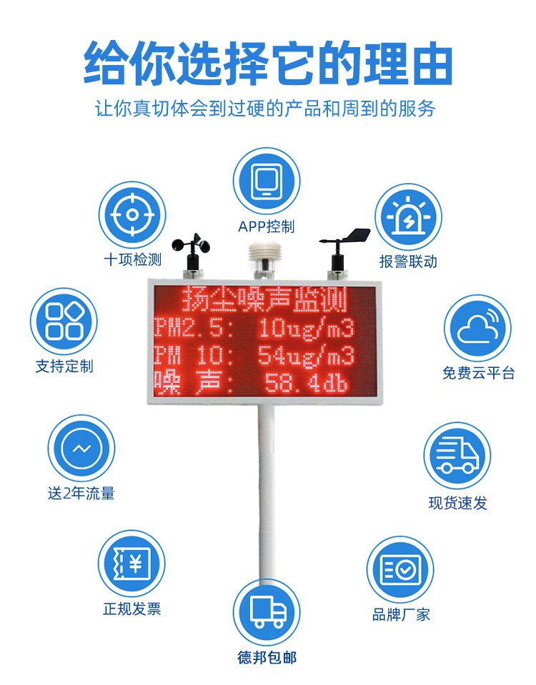 测量范围 | PM2.5/PM10/噪音/温度/湿度等 | ||