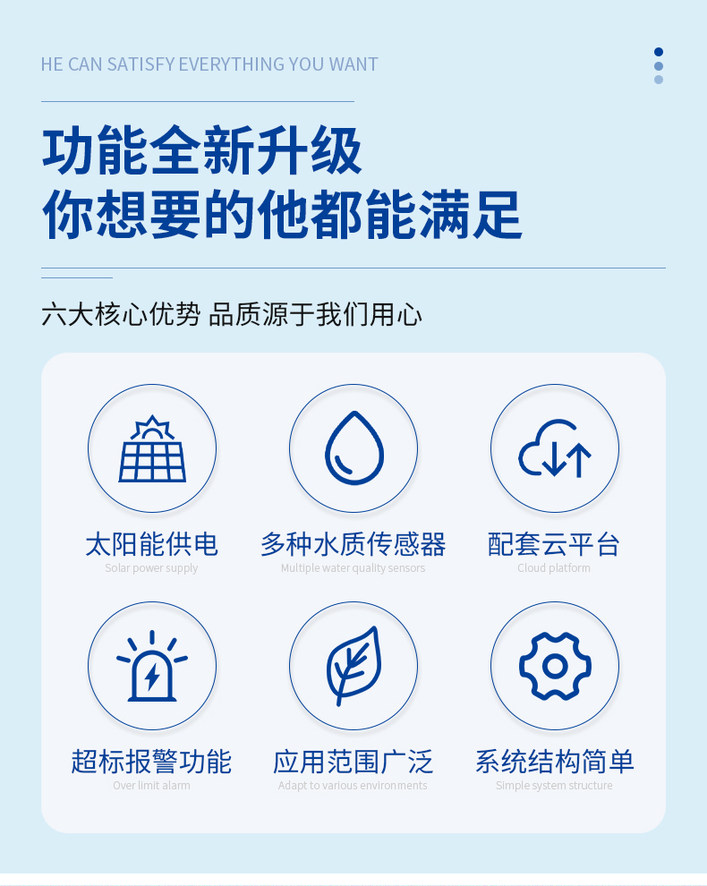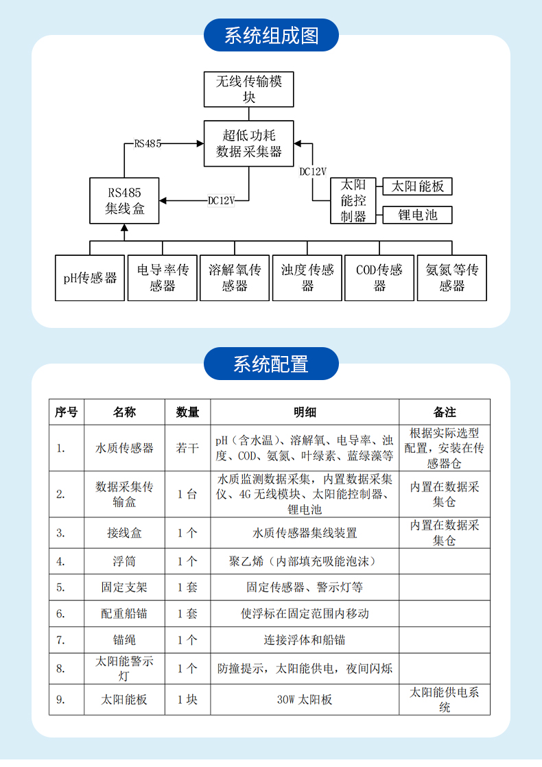 搭载能力 | ≤6个水质探头(pH、氨氮、COD、电导率、浊度等传感器) | ||