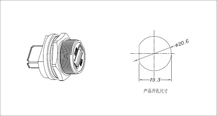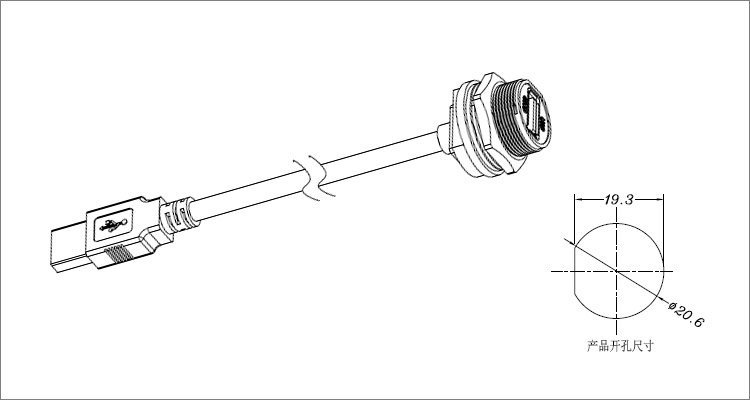USB2.0面板安装防水母座信号通迅数据防水USB3.0type防水连接器