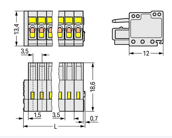 采用笼式弹簧连接技术,用于快速、*振动、免维护的夹持连接。根据产品类型不同配置针型和/或孔型连接器。?
