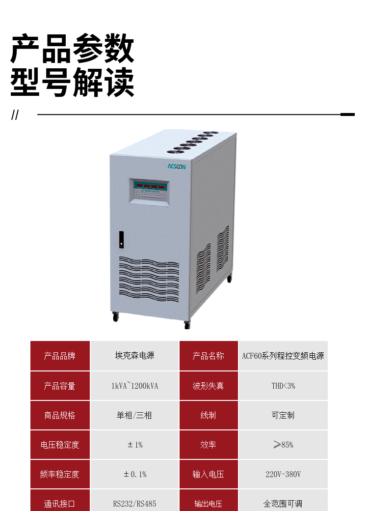 单相/三相程控变频电源1kVA~1200kVA高精度带通讯 型号 | ACF60系列 | ||