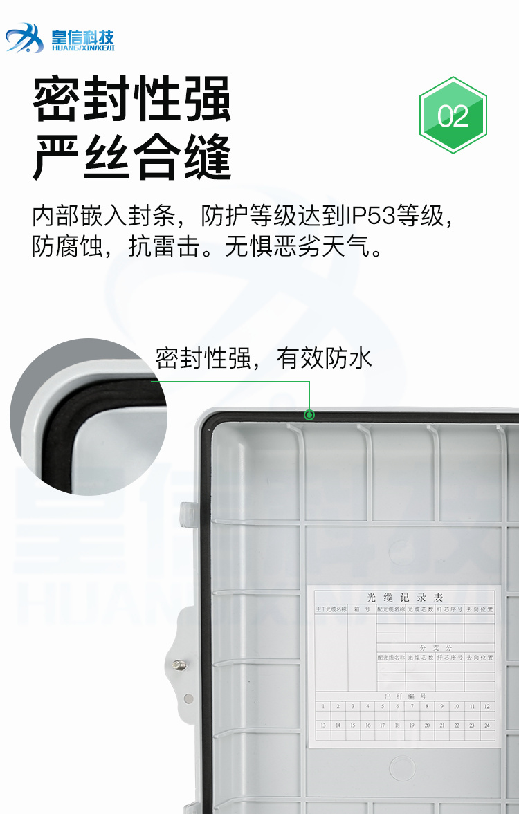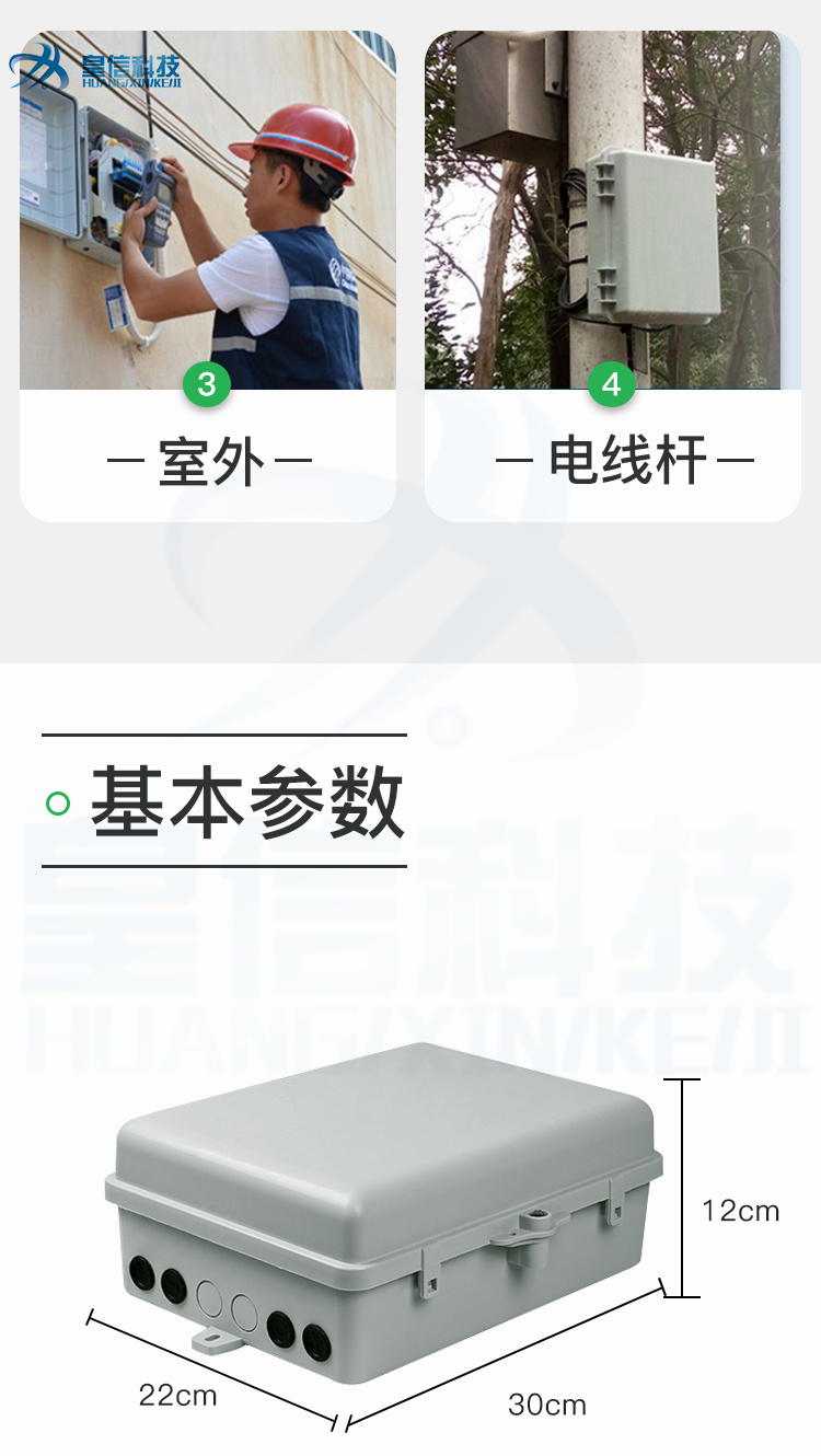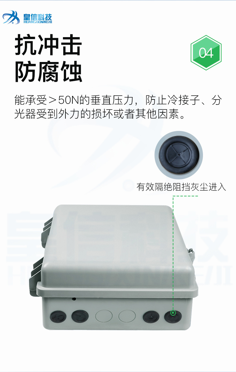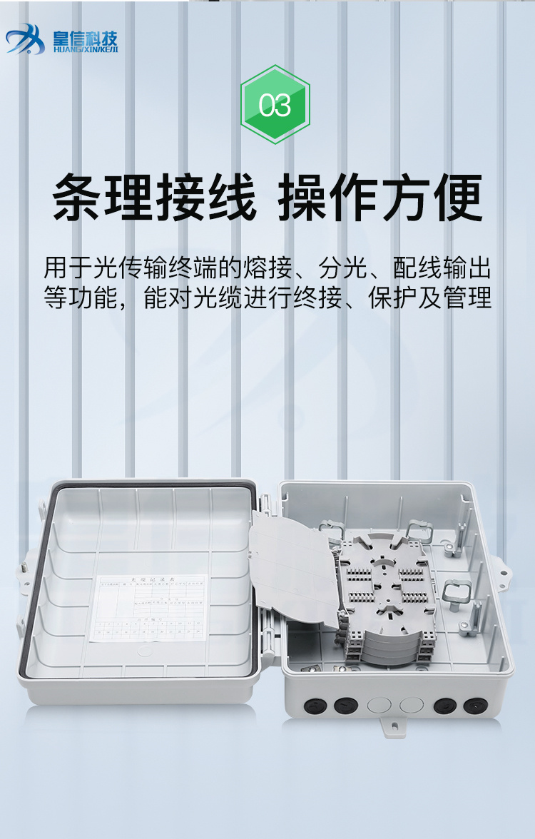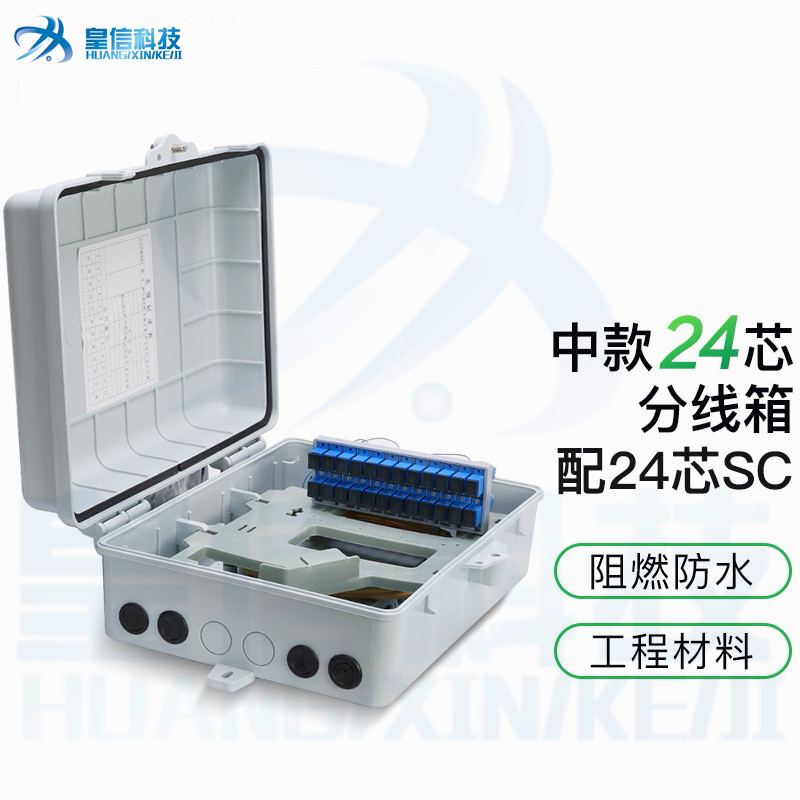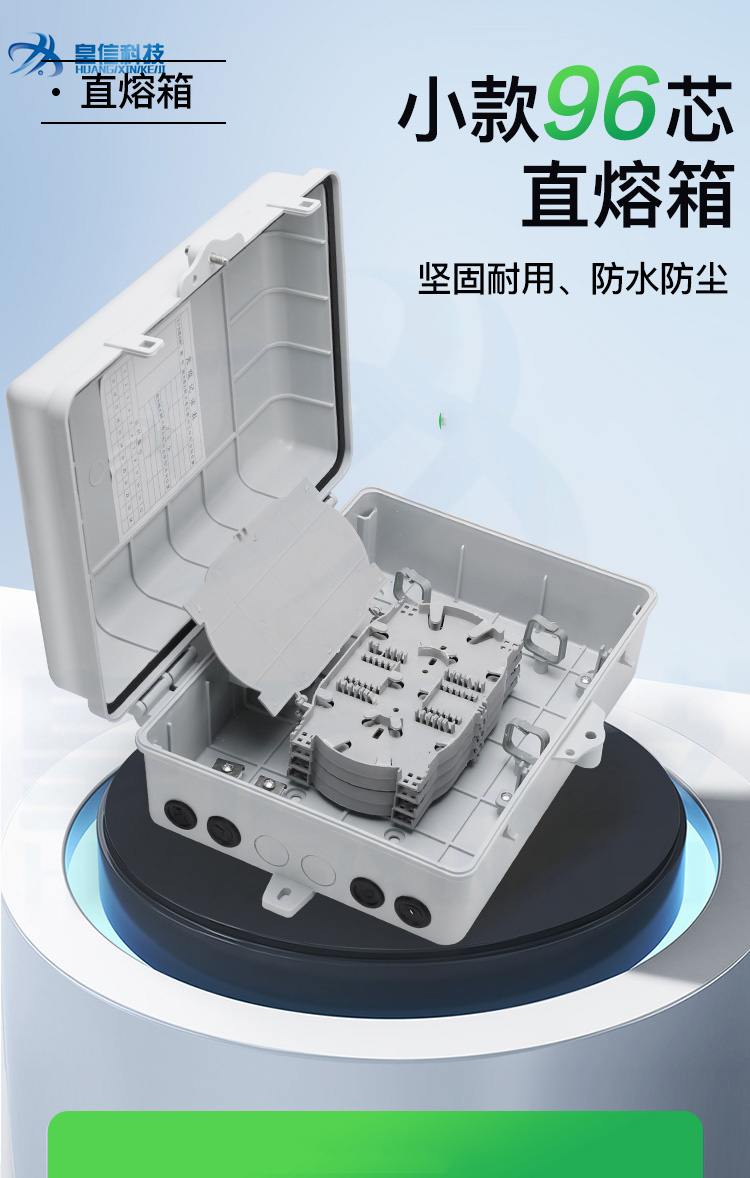 皇信光纤直熔箱24芯48芯72芯96芯144芯 室外壁挂/抱杆光缆分纤箱 材质塑料