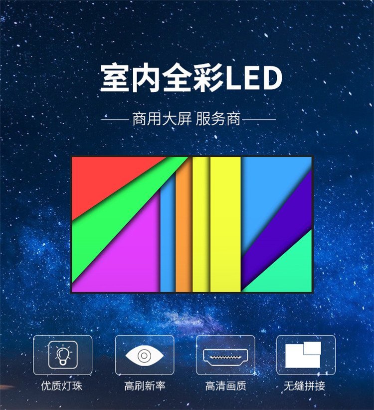 LED大屏幕(LED panel):LED就是light emitting diode ,发光二极管的英文缩写,简称LED。它是一种通过控制半导体发光二极管的显示方式,其大概的样子就是由很多个通常是红、绿、蓝三色小灯组成,靠灯的亮灭来显示字符。用来显示文字、图形、图像、动画、行情、视频、录像信号等各种信息的显示大屏幕。LED大屏幕是21世纪广告业发展的趋势,是具有音视频功能的户内外广告展示设备,属国际的高科技产品。该设备外观新颖独特,其面积可随意调整,不仅能播放音视频广告节目,而且四面还可装固定灯箱广告位,现各地政府都鼓励推行使用户外LED大屏幕,陆续取消帆布广告、灯箱广告审批。户外LED大屏幕是帆布广告、灯箱广告的理想替代产品,能为您带来巨大的社会效益和丰富的经济效益。