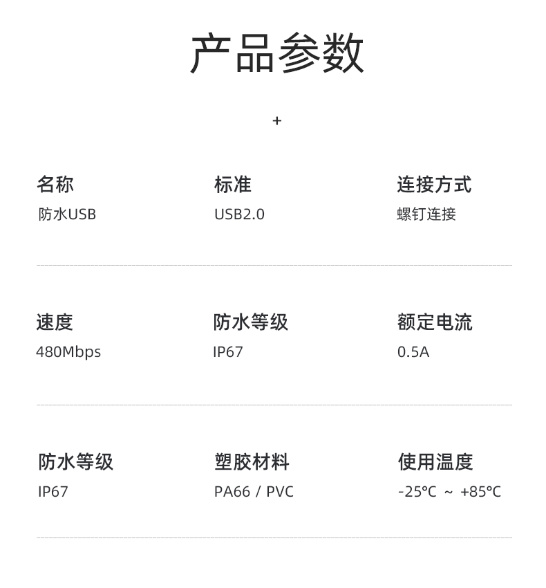防水等级 | IP67/IP68 | ||