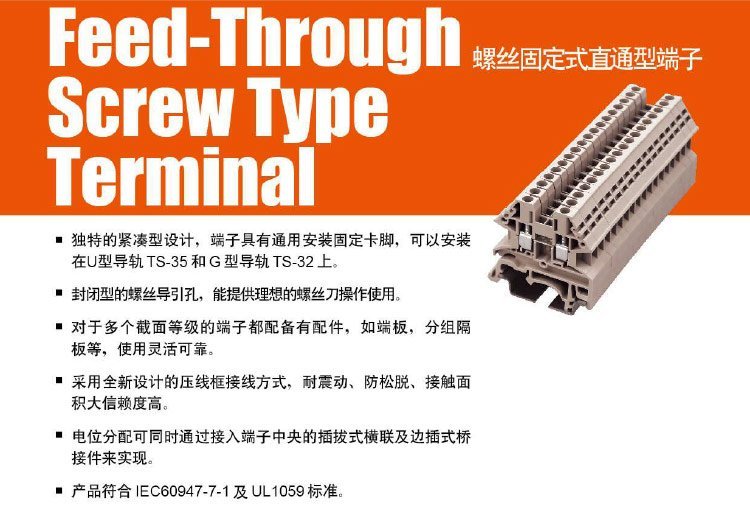DINKLE町洋螺丝固定式接地导轨端子一进一出直通型DKN-PE系列