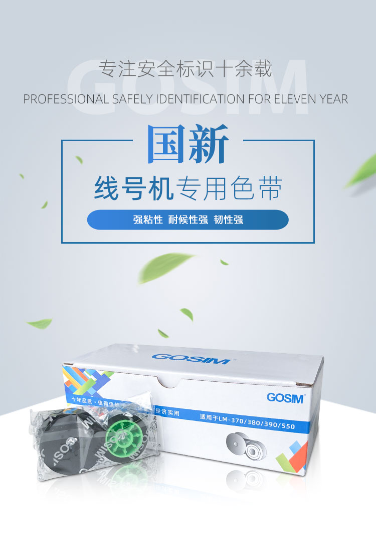 国新GOSIM MAX线号机色带 适用于LM-370/380/390/550 黑色 50米/卷 颜色 | 黑色 | ||