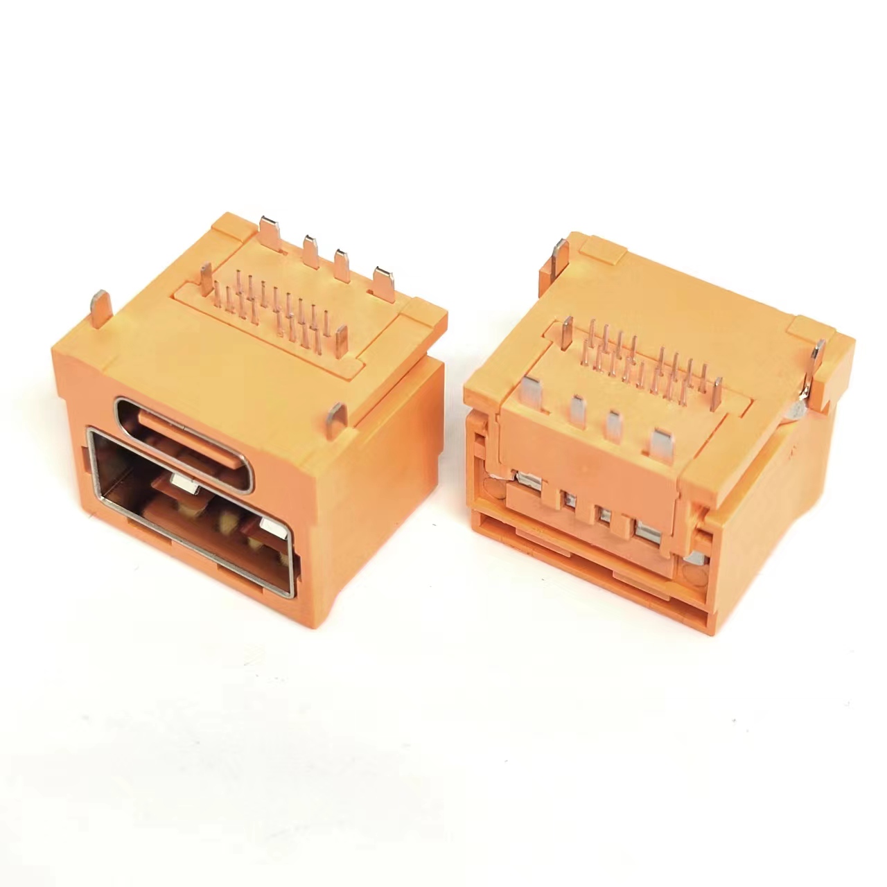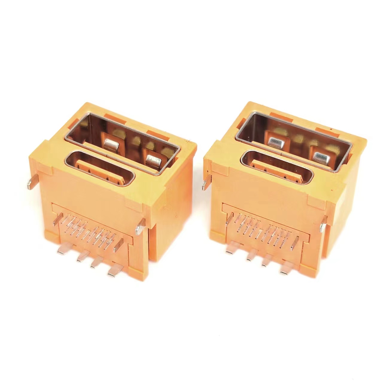 HUAWEI88WPD快充插座TYPE-C USB二合一插座双7A大电流90度DIP橙胶