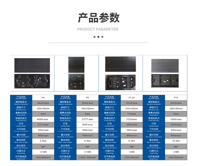 像素点间距 | 2mm、2.5mm、3mm、4mm等 | ||