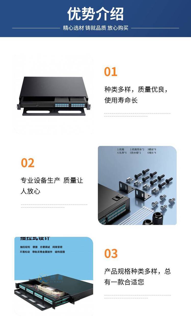 24/48/72/96/144芯熔接型MPO高密度光纤配线架OM3/OM4预端接模块 品牌 | 欣昊 | ||