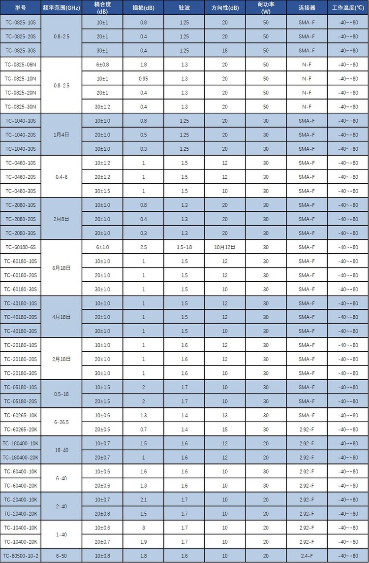 产品特点 | 低损耗,高定向性和高可靠性 | ||