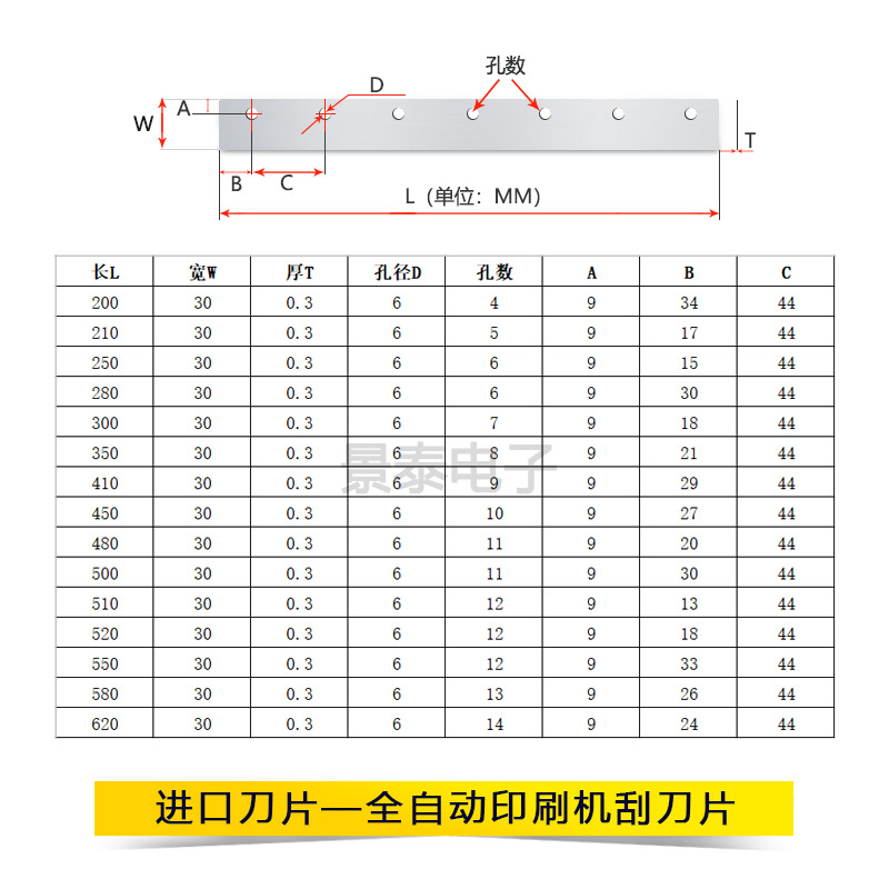 刀片厚度0.3mm(钢刮刀片)、7mm(胶刮刀片)