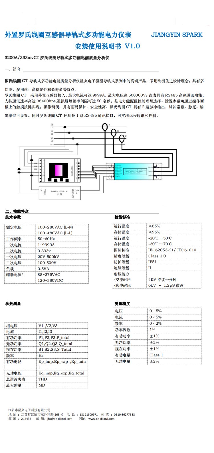星火电子三相罗氏线圈配多功能电表柔性开合互感器可根据客户订制