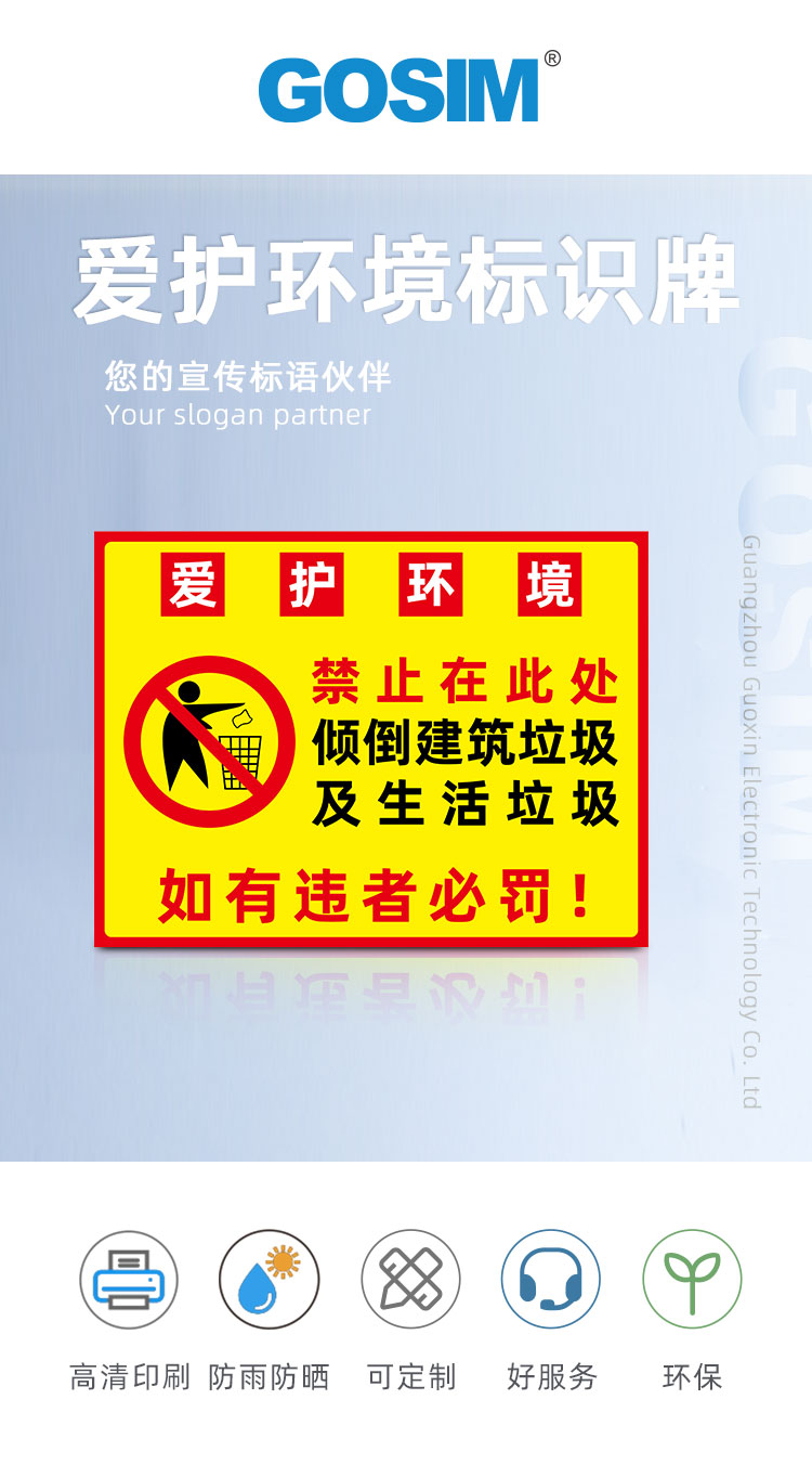 国新GOSIM小区爱护环境文明标语标牌禁止严禁请勿乱扔垃圾警示牌