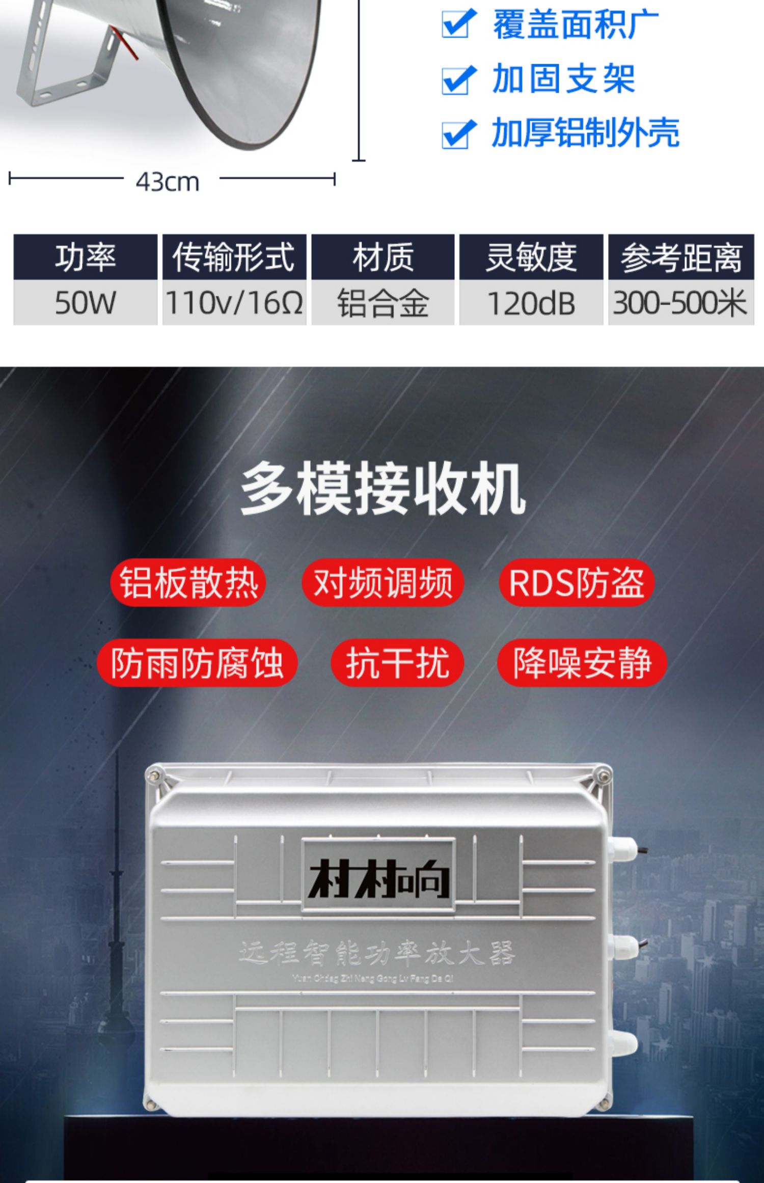 村村响双模对讲机音柱调频无线广播发射机防水喇叭工厂喊话扩音
