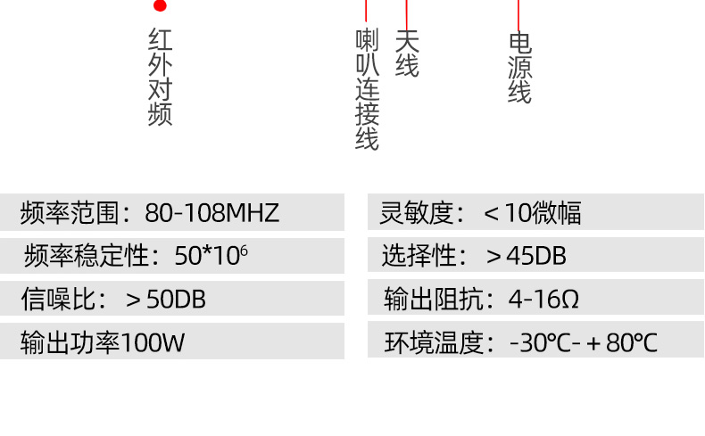 • 规格:1台发射机 6个双模接收器8060 12只喇叭 6个对讲机