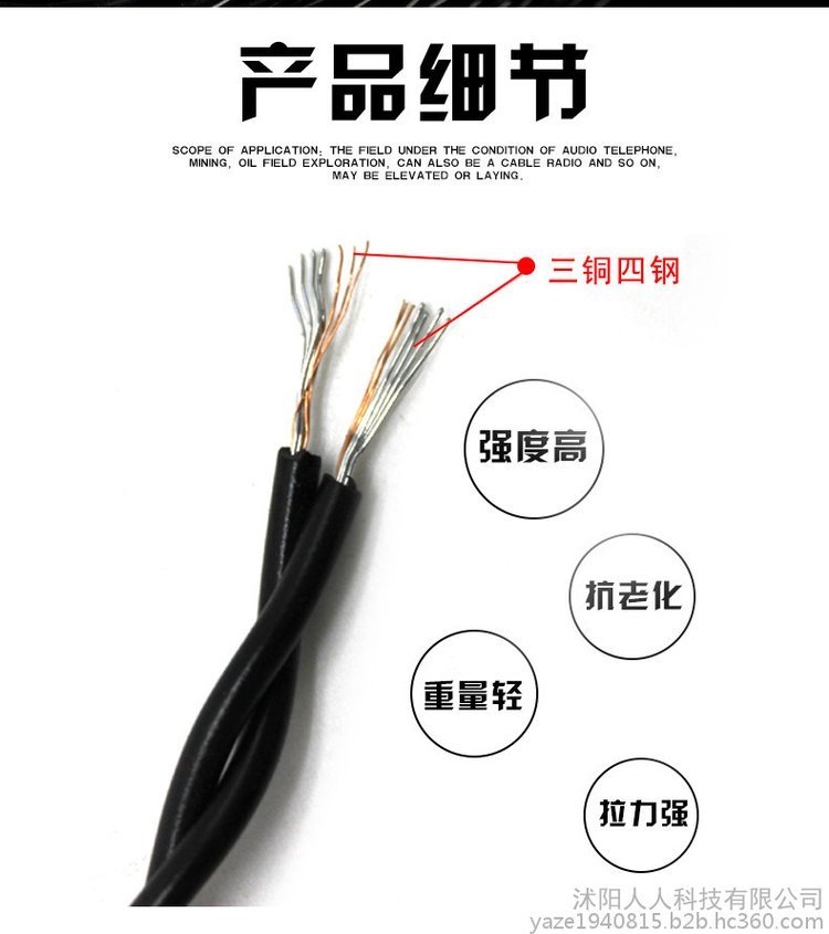 超轻型被复线三铜四钢喇叭线被覆线音箱线3铜4钢训双绞线电话线