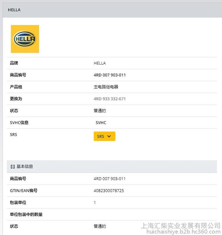 HELLA/海拉4RD 007.903-011 继电器 海拉继电器 品牌 | 海拉 | ||