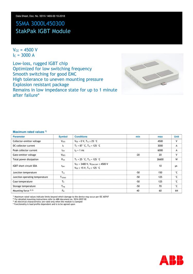 日立能源 压接封装IGBT模块 5SMA 3000L450300(3000A/4500V) 品牌 | 日立能源 | ||