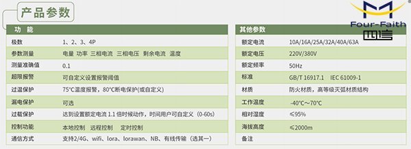 漏电功能:AC型,30mA,具备定时自检、远程自检和本地自检功能