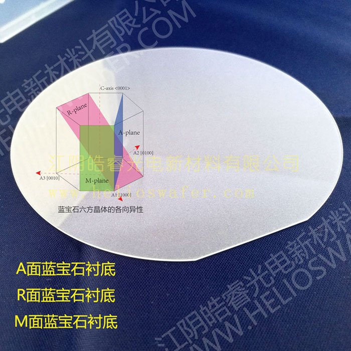 * 蓝宝石晶体具有各向异性,C面(0001)是最为常用的蓝宝石晶面,其他主要晶面有A面(11-20),M面(1-100),R面(1-102)。