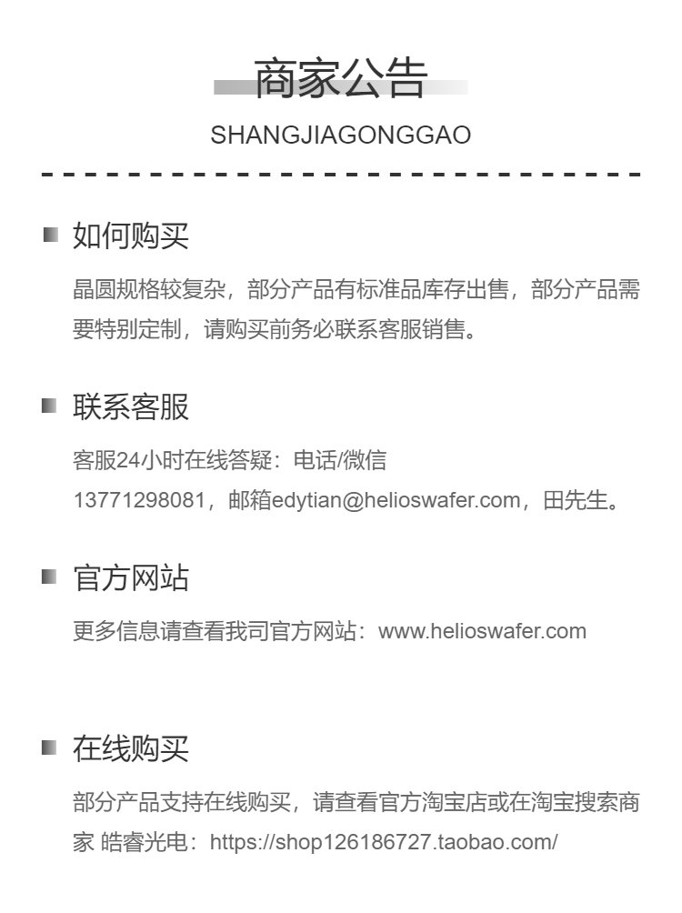 材质:CZ法单晶硅/FZ区熔单晶硅